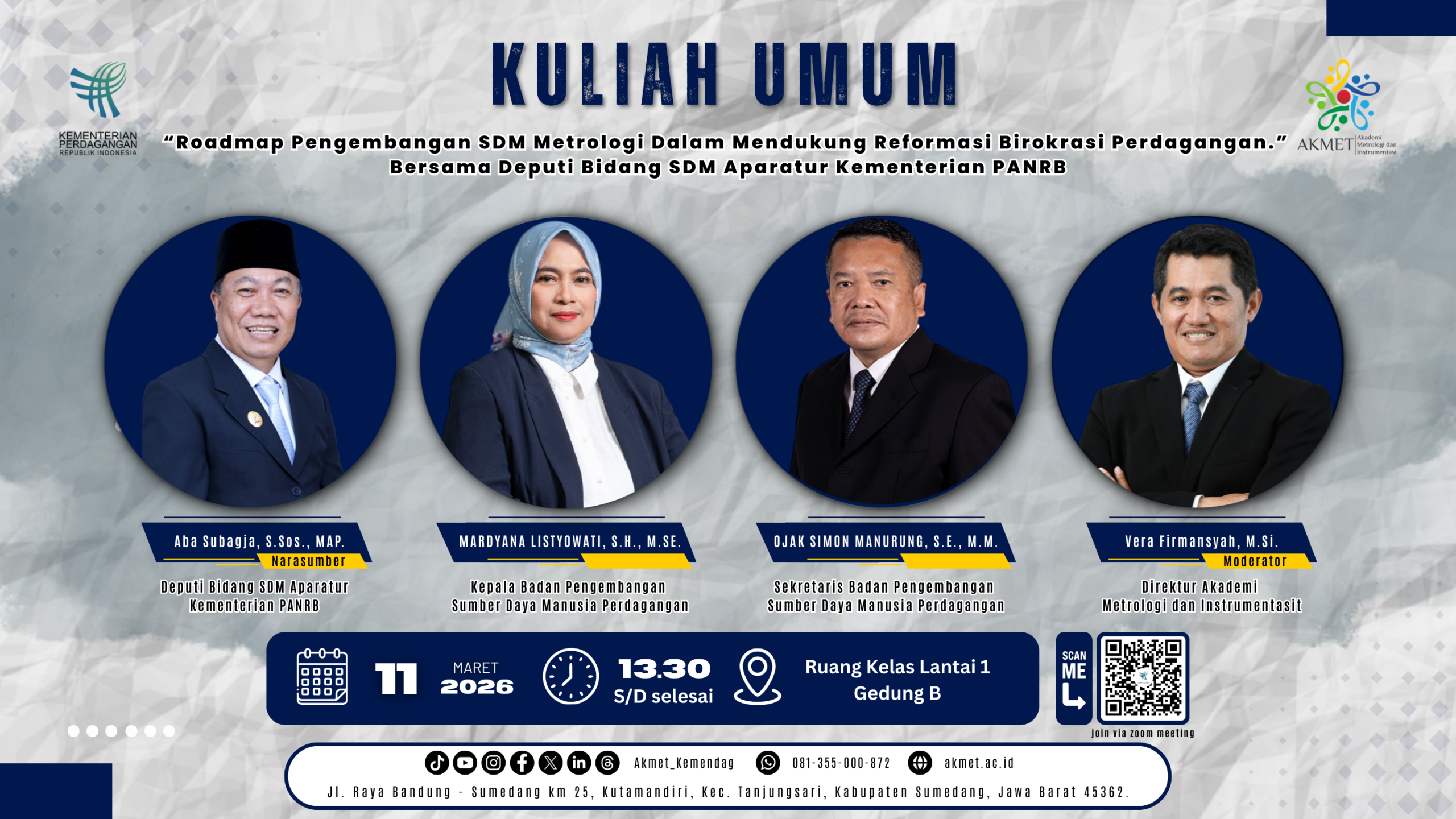 Kuliah Umum “Roadmap Pengembangan SDM Metrologi dalam Mendukung Reformasi Birokrasi Perdagangan” bersama Deputi Bidang SDM Aparatur Kementerian PANRB.